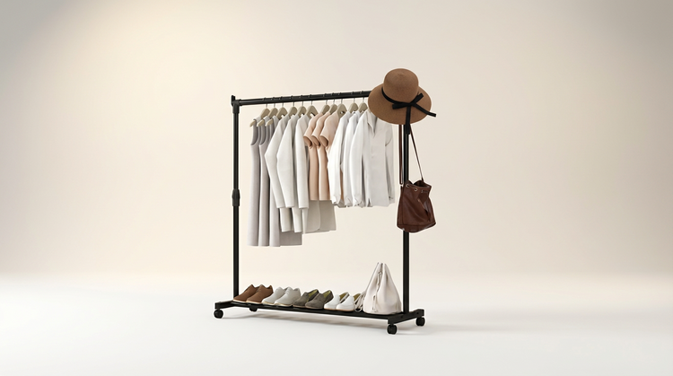 Portant vêtement à roulettes pour un rangement mobile et flexible