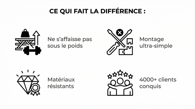 Montage simple, structure stable. Ça change vraiment l’organisation à la maison.