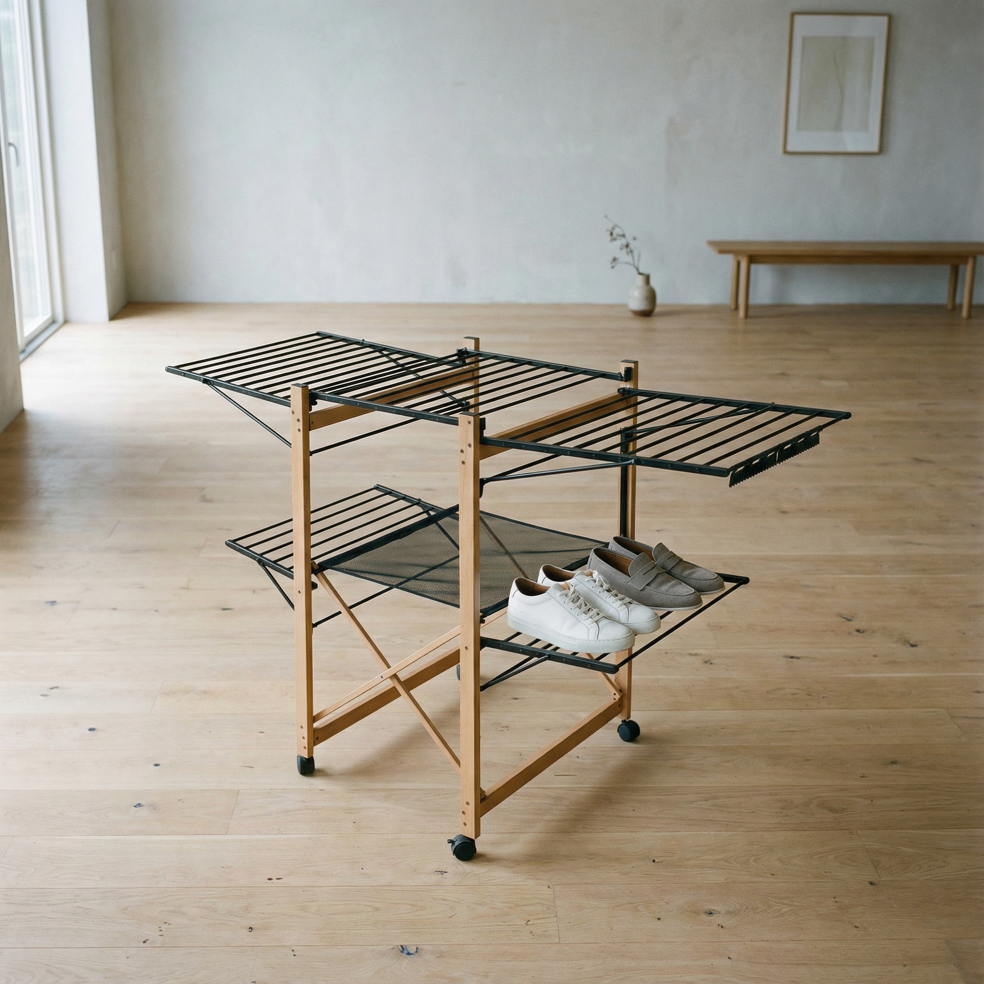 Conçu pour les familles actives, cet étendoir mobile combine robustesse et élégance. Sa structure en acier inoxydable supporte jusqu'à 25 kg de linge mouillé sans fléchir, tandis que son design imitation bois s'intègre naturellement à votre intérieur.