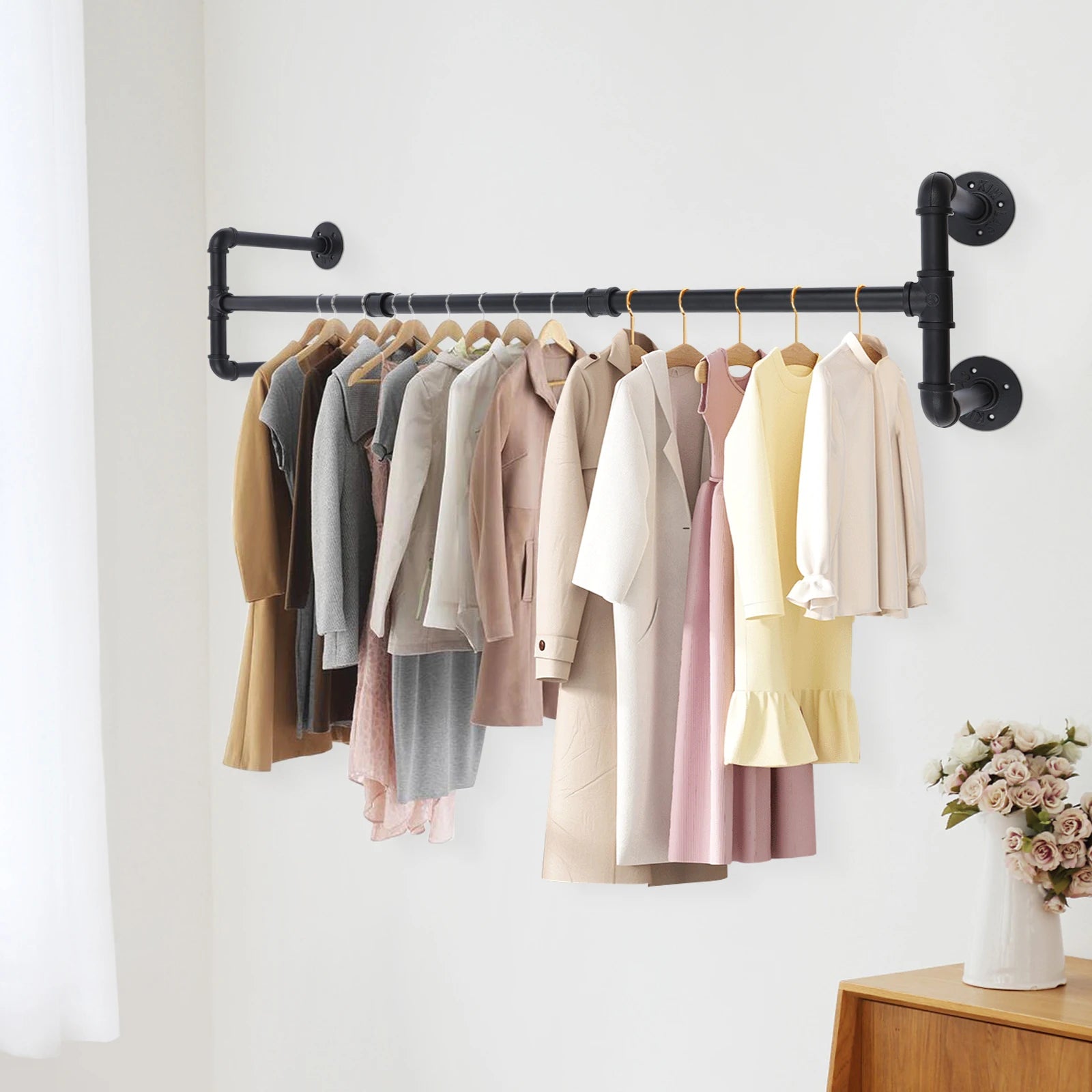 Portant mural en métal noir style industriel pour vêtements professionnels