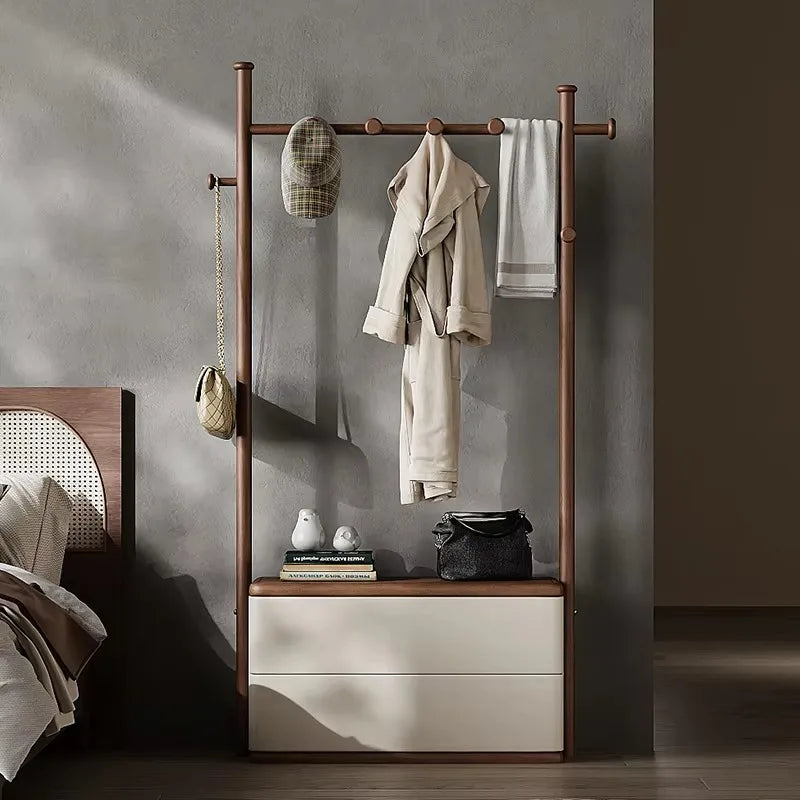 Portant penderie en bois massif avec 2 tiroirs intégrés