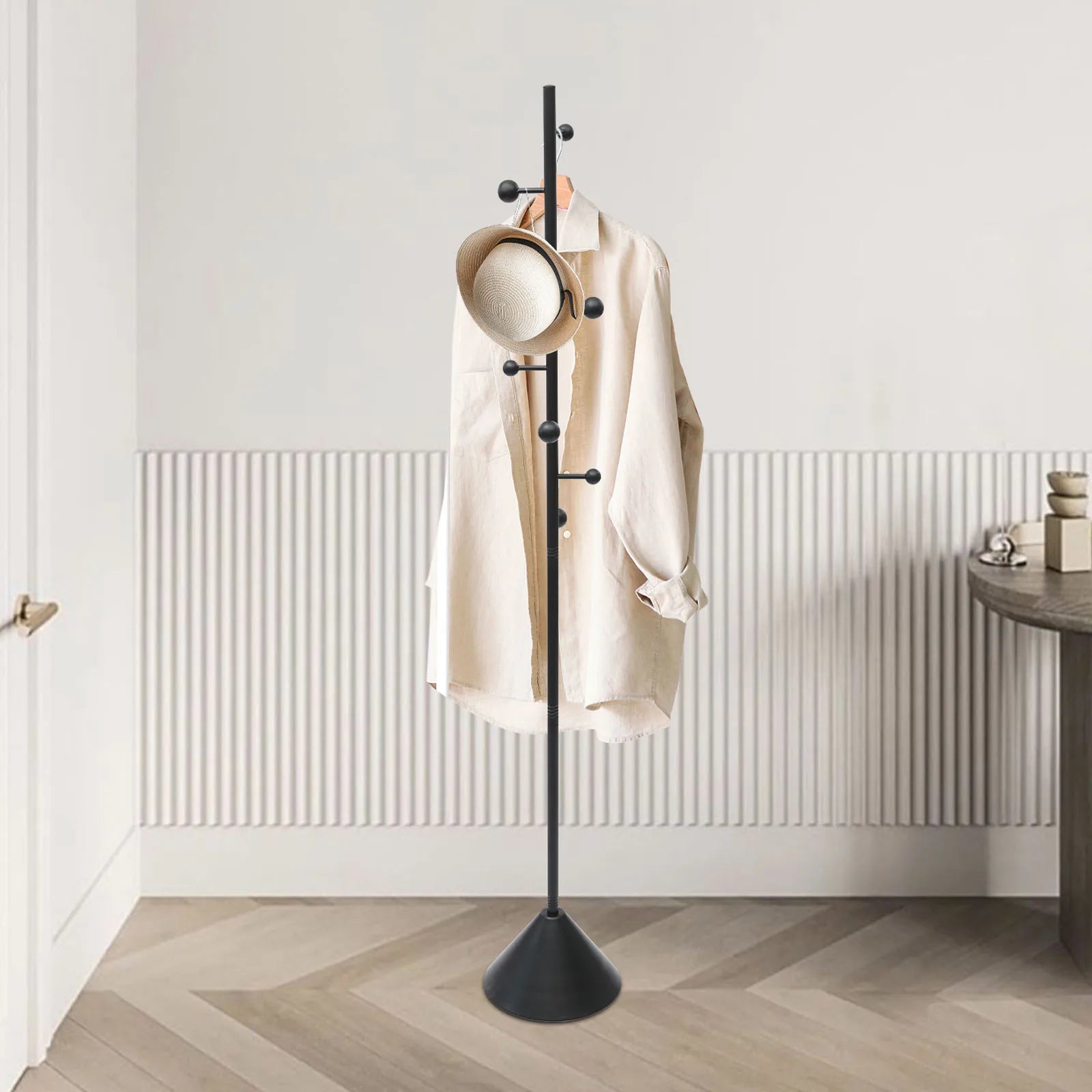 Porte manteau classique design avec base conique pour un rangement stable et organisé