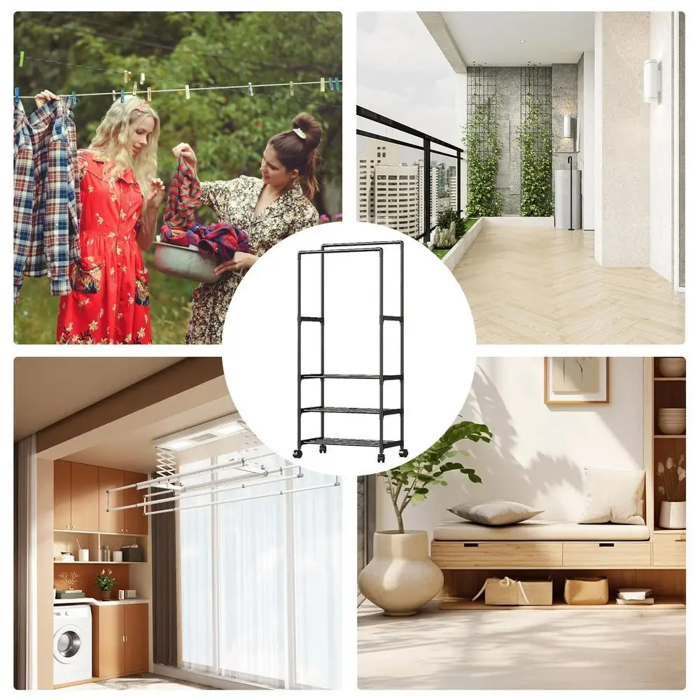 3.Large Capacity: Our clothes rack with a double row design suspends clothes without conflict, ensuring ample capacity for organized and accessible garment storage